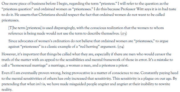 So that no one may say I am embarrassed by, or don’t have answers to, Witt’s response—a response which was far angrier than I expected—I will go through it here, paragraph by paragraph.