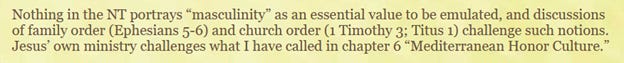 These seem to me like masculine things. I think Witt assigns solely negative things to masculinity. Otherwise how could he say it is nowhere portrayed positively in the NT?
