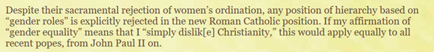 While he clearly thinks he’s insulting me in this paragraph, it’s not clear what point he’s making. Catholics are egalitarians?
