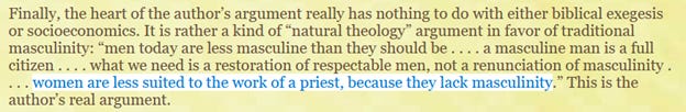 In any event, that argument about masculinity was one from reason, not from what I called “our common authority.”