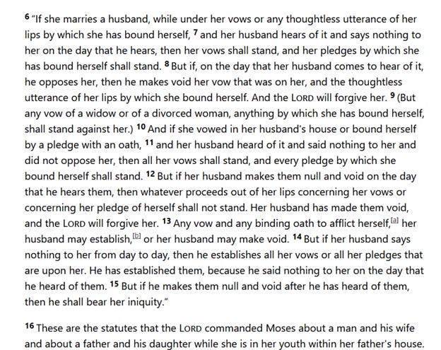 Does Witt believe Numbers 30 is “of divine origin” or is it merely a cultural relic?
